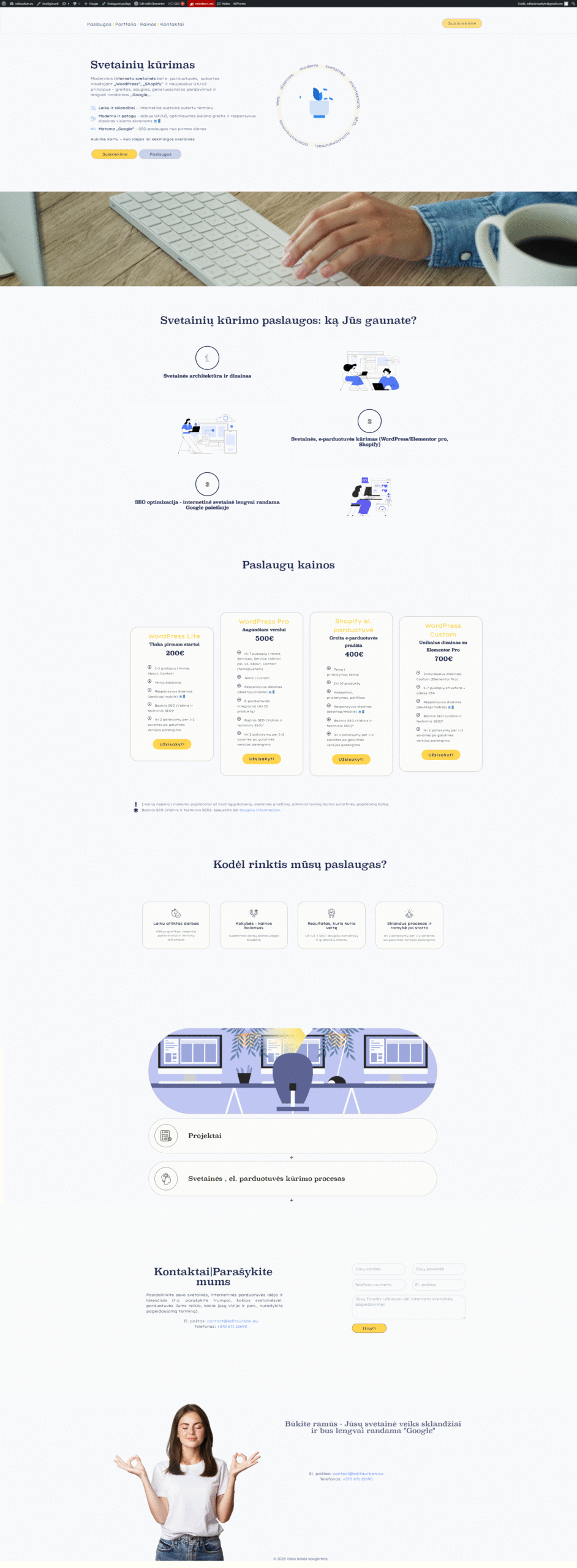 - Moderni, funkcionali svetainė su WordPress (Elementor Pro) arba Shopify.